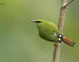 火尾绿鹛是莺科、绿鹛属小型鸟类,体长11-14厘米。上体绿色,头顶至枕具黑色鳞状斑,眼先和眼后黑色,…