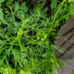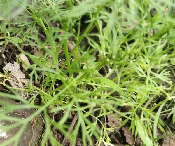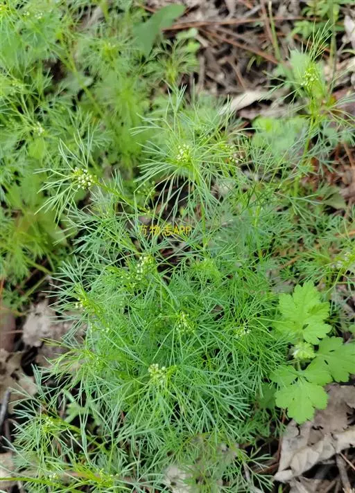一年生草本,高25-45厘米。茎多分枝,光滑。根生叶有柄,柄长2-5 (11) 厘米,基部边缘略扩大成膜质叶鞘;叶片轮廓呈长圆形至长圆状卵形,长2-10厘米,宽2-8厘米,3至4回羽状多裂,裂片线形至丝状;茎生叶通常三出式羽状多裂,裂片线形,长10-15毫米。