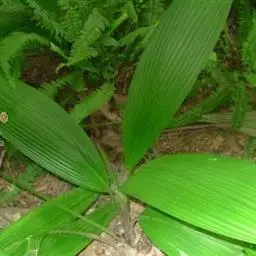 大叶仙茅 粗壮草本,高达1米多。根状茎粗厚,块状,具细长的走茎。叶通常4-7枚,长圆状披针形或近长圆形,长40-90厘米,宽5-14厘米,纸质,全缘,顶端长渐尖,具折扇状脉,背面脉上被短柔毛或无毛;叶柄长30-80厘米,上面有槽,侧背面均密被短柔毛。
