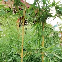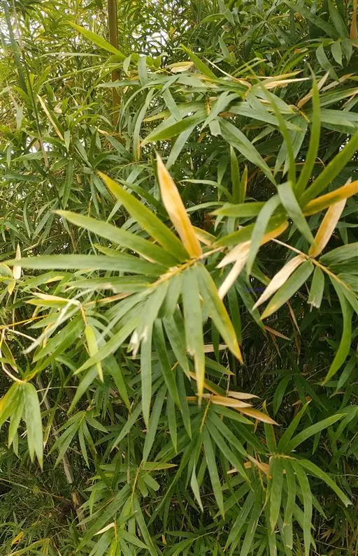 凤尾竹(Bambusa multiplex (Lour.) Raeusch. cv. Fernleaf R. A. Young):该栽培品种与观音竹(Bambusamultiplex(Lour.) Raeusch. ex Schult.var.riviereorumR. Maire)相似,但植株较高大,高3-6米,竿中空,小枝稍下弯,具9-13叶,叶片长3.3-6.5厘米,宽4-7毫米等特征与之有别。原产于中国,华东、华南、西南以至台湾、香港均有栽培。多种植以作绿篱或供观赏。