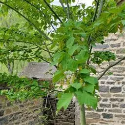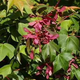 青窄槭,枝干绿色平滑,有白色条纹。叶卵状椭圆形,长6-14CM,基部圆形或近心形,先端长尾状。果翅展开成钝角或近于平角。耐半荫,喜生于湿润溪谷。播种繁殖。景观用途: 入秋夜色黄紫,宜丛植或成片栽植,用作风景林