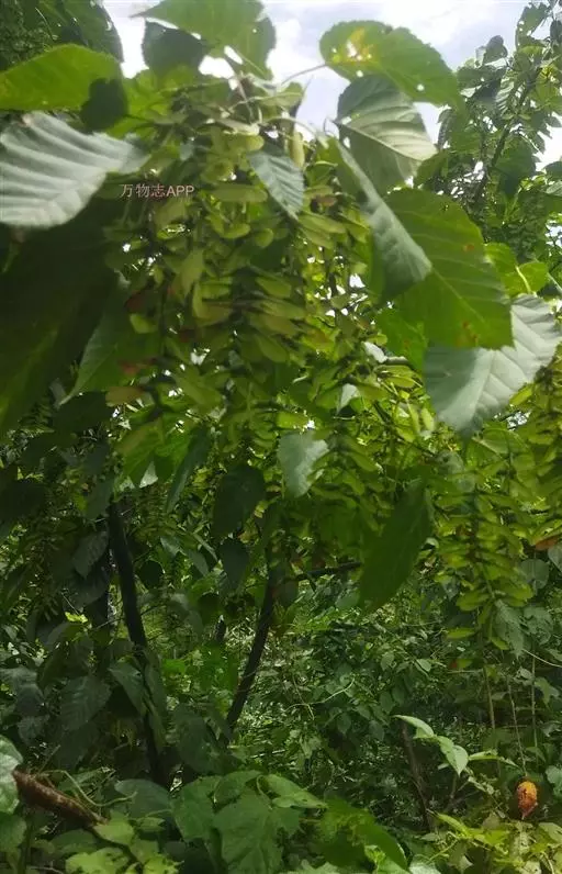 落叶乔木,高约10-15米,稀达20米。树皮黑褐色或灰褐色,常纵裂成蛇皮状。小枝细瘦,圆柱形,无毛;当年生的嫩枝紫绿色或绿褐色,具很稀疏的皮孔,多年生的老枝黄褐色或灰褐色。冬芽腋生,长卵圆形,绿褐色,长约4-8毫米;鳞片的外侧无毛。叶纸质,外貌长圆卵形或近于长圆形,长6-14厘米,宽4-9厘米,先端锐尖或渐尖,常有尖尾,基部近于心脏形或圆形,边缘具不整齐的钝圆齿;上面深绿色,无毛;下面淡绿色,嫩时沿叶脉被紫褐色的短柔毛,渐老成无毛状;主脉在上面显著,在下面凸起,侧脉11-12对,成羽状,在上面微现,在下面显著;叶柄细瘦,长约2-8厘米,嫩时被红褐色短柔毛,渐老则脱落。花黄绿色,杂性,雄花与两性花同株,成下垂的总状花序,顶生于着叶的嫩枝,开花与嫩叶的生长大约同时,雄花的花梗长3-5毫米,通常9-12朵常成长4-7厘米的总状花序;两性花的花梗长1-1.5厘米,通常15-30朵常成长7-12厘米的总状花序;萼片5,椭圆形,先端微钝,长约4毫米;花瓣5,倒卵形,先端圆形,与萼片等长;雄蕊8,无毛,在雄花中略长于花瓣,在两性花中不发育,花药黄色,球形,花盘无毛,现裂纹,位于雄蕊内侧,子房被红褐色的短柔毛,在雄花中不发育。花柱无毛,细瘦,柱头反卷。翅果嫩时淡绿色,成熟后黄褐色;翅宽约1-1.5厘米,连同小坚果共长2.5-3厘米,展开成钝角或几成水平。花期4月,果期9月。