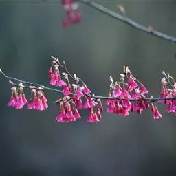 钟花樱桃 Yu et Li):乔木,灌木,高3-8米,树皮黑褐色。小枝灰褐色或紫褐色,嫩枝绿色,无毛。…