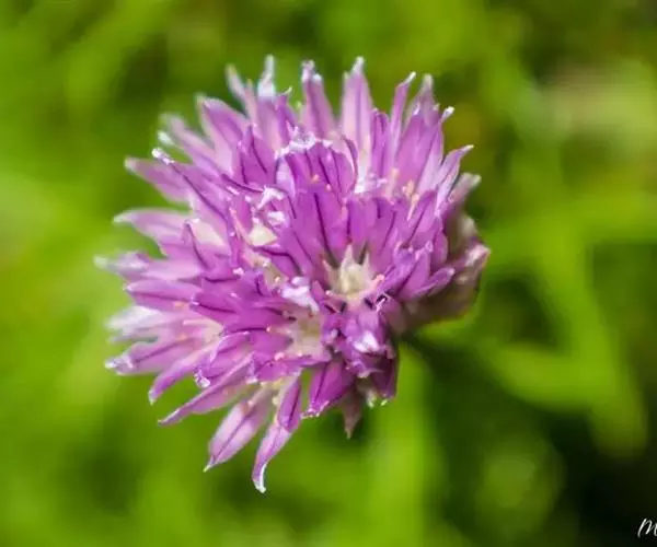 鳞茎数枚聚生,狭卵状圆柱形,粗0.3-1厘米;鳞茎外皮灰色至灰褐色,薄革质至革质,片状破裂。叶1-2枚,中空的管状,比花葶短,粗5-7(-10)毫米。花葶圆柱状,高15-70(-80)厘米,中部以下被光滑的叶鞘;总苞2裂,宿存;伞形花序半球状至近球状,具多而密集的花;小花梗近等长,比花被片长1.5-3倍,基部无小花苞片;花淡紫色;花被片卵状披针形至披针形,长4-8(-10)毫米,宽2-3毫米,等长,有时外轮的略短,具紫色中脉,先端具短尖头;花丝等长,等长于或略短于花被片,基部合生并与花被片贴生,合生部分高约1毫米,内轮花丝分离部分呈狭长三角形,基部约为外轮基部宽的1.5倍,外轮的锥形;子房卵球状,腹缝线基部具小的凹陷蜜穴;花柱伸出花被外;柱头点状。花果期6-9月。