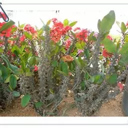 虎刺梅:别称铁海棠,是蔓生灌木植物。茎多分枝,长60-100厘米,直径5-10毫米,具纵棱,密生硬…