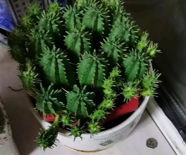 魁伟玉原产南非,是一种大戟科的多年生肉质植物,植株具粗圆筒形肉质茎,有10条以上的突出棱,…