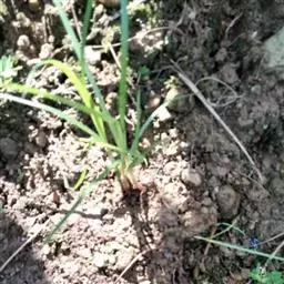 (2)种植 小葱株的种植,用穴栽,穴距30厘米x45厘米。每穴种3~5株,种植深度以埋住假茎为度。种植后浇水,再检查有无露根或倒株,并用土把露根株盖上,扶正倒斜株。在植株未成长前不培土。不分株的品种,植株较高大,可开沟行栽,生长期间平沟培土。