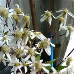 头状花序多数或少数在茎顶或枝端排成伞房状或复伞房状花序,花序径常3-6厘米,少有13厘米的。花序梗粗壮,密被稠密的短柔毛。总苞圆柱形,长1厘米,宽4-5毫米,约含20个小花;总苞片3-4层,覆瓦状排列,外层苞片卵形,长2毫米,外面被短柔毛,顶端钝,向内渐长,中层及内层苞片长圆形,长7-8毫米,顶端渐尖;全部苞片有三条宽中脉,麦杆黄色,无腺点。花白色或粉红色,花冠长5毫米。