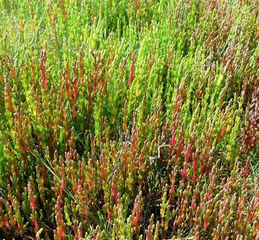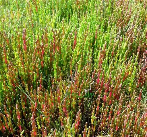 盐角草(学名:Salicornia europaea L.)是藜科,盐角草属一年生草本植物,高可达35厘米。茎直立,多分枝;枝肉质,叶不发育,鳞片状,顶端锐尖,基部连合成鞘状,边缘膜质。花序穗状,腋生,花被肉质,倒圆锥状,上部扁平成菱形;雄蕊伸出于花被之外;花药矩圆形;子房卵形;钻状,果皮膜质;种子矩圆状卵形,种皮近革质,6-8月开花结果。