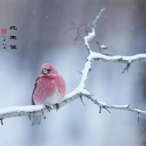 北朱雀,是燕雀科朱雀属鸟类。雄鸟额和头顶前部珠白色具窄的粉红色羽缘,…