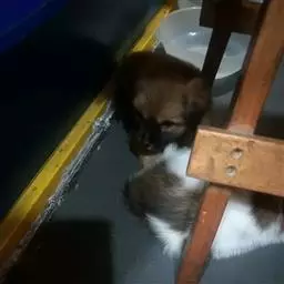 日本狆眼睛距离分的很开、大、圆、颜色深且又光泽。眼角内能看见少量白色,是这个品种特有的,使他们看上去好像很惊讶的样子。