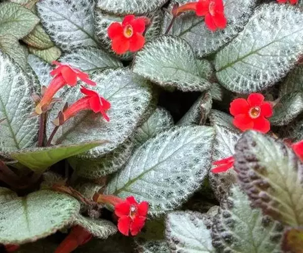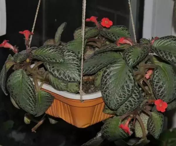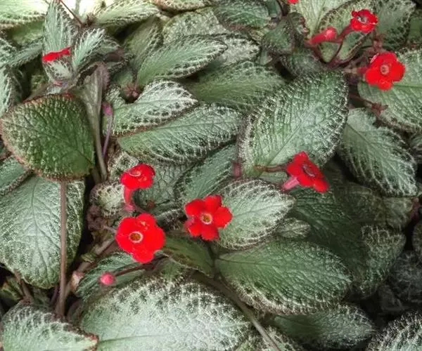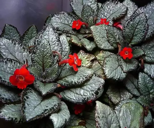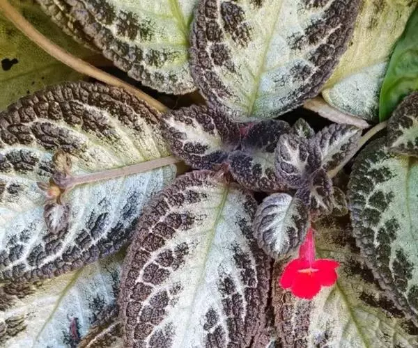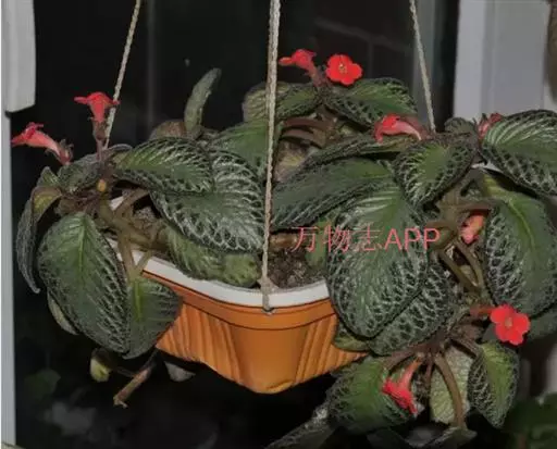 学名Episcia cupreata。“cupreata”l拉丁文,为“铜色的”。原产巴西、哥伦比亚 。同属植物8种。多年生常绿草本植物。喜荫花植株矮,高仅十几厘米,多具匍匐性,分枝多。叶对生,呈椭圆形,深绿色或棕褐色,边缘有锯齿,基部心形;叶面多皱并密生茸毛,银白色的中脉从基部至尖端,中脉及支脉两侧呈淡灰绿色,叶背浅绿色,或淡红色。自茎基部叶腋间长出匍匐茎,并沿土面向外伸展;茎顶端长出小植株。花单生或呈小簇生于叶腋间,亮红色,花期春季至秋季。果期秋季。