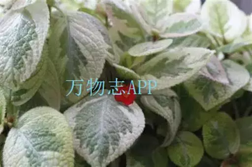 叶腋处生长走茎,匍匐状,顶端生小株,基部可生根。叶对生卵状肉质,基部心形,色绿或绿中带古铜色;叶脉银白色,叶面绿色多皱,中肋及支脉成网纹状。叶背离淡绿或淡红,密生白色软毛,叶缘有细锯齿。