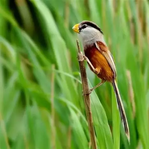 白眶鸦雀是莺科、鸦雀属小型鸟类,体长12-14厘米。嘴黄色、短而粗厚,头顶至后颈褐色沾棕具白色眼圈,…