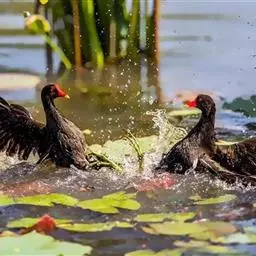 黑水鸡:是鹤形目、秧鸡科的鸟类,共有12个亚种。中型涉禽,体长24-35厘米。嘴长度适中,…