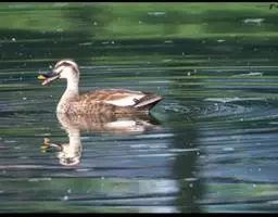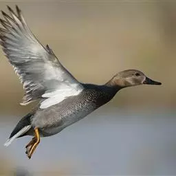 赤膀鸭,是雁形目鸭科鸭属中型游禽。雄鸟嘴黑色,脚橙黄色。头侧及头上部浅白色,满杂以褐色斑点,…