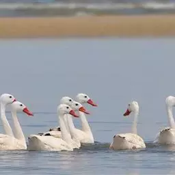 扁嘴天鹅:体长90-115厘米,体羽白色,羽端黑色,在飞行时则很明显。雁喙和脚红色。…