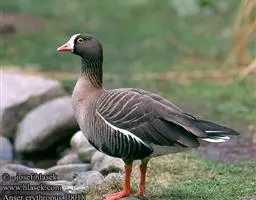 小白额雁鸭科雁属鸟类,体长53-66厘米,翼展120-135厘米,体重1400-2300克。腿桔黄色,…