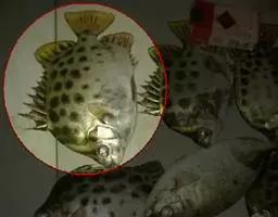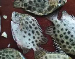 全身斑点状 体长椭圆形,侧扁而粗壮,标准体长为体高之3.0-3.6倍,头背部斜直;眶间区微凸。眼小,短于吻长。口大,鱼头部、体侧及各鳍均散布着很多青黑色斑点;上下颌前端具小犬齿或无,两侧齿细尖,下颌约2-5列。前鳃盖骨后缘微具锯齿,下缘光滑。体被细小栉鳞;背鳍鳍棘部与软条部相连。体长一般为100厘米左右,最长达200厘米,重达200千克。腹鳍腹位,末端延伸不及肛门开口;胸鳍圆形,中央之鳍条长于上下方之鳍条,且长于腹鳍,但短于后眼眶长;尾鳍圆形。体侧及头部呈淡灰绿色或褐色,散布者暗橘红色或深褐色的圆形深色斑点,斑点中央色泽较周围深;体侧另有一大型的暗色斑块位于背鳍最后四根硬棘之基部上;有些鱼会有5条暗色垂直斑纹。