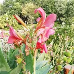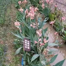 粉美人蕉:是一种球根草本植物。根茎延长,株高1.5-2米;茎绿色。叶片披针形;总状花序疏花,单生或…