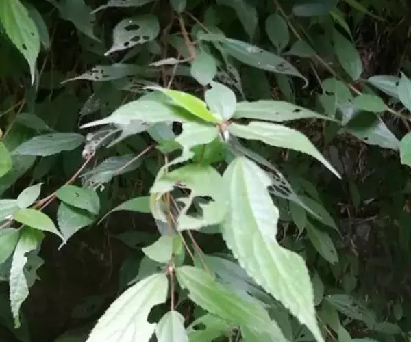 叶常生于枝的上部,草质,以后有时变纸质,卵形、狭卵形、稀倒卵形,长3-15厘米,宽1.5-6厘米,先端渐尖或尾状渐尖,基部圆形,稀宽楔形,边缘自下部以上有锯齿或粗牙齿,上面常疏生糙伏毛,有时近平滑,下面常被灰白色毡毛,以后渐脱落,或只生柔毛或多少短伏毛,基出脉3,其侧出的一对,稍弧曲,与最下一对侧脉环结,侧脉2-3对,在近边缘处彼此环结;叶柄长1-7厘米,被粗毛;托叶条状披针形,长约10毫米,先端尾状渐尖,背面中肋疏生粗毛。