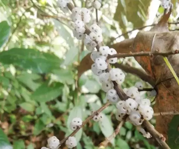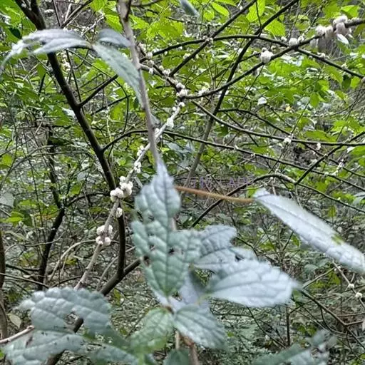 花序生于上年生枝和老枝上,几无梗,呈簇生状,团伞花簇径3-5毫米。雄花在芽时径约1.5毫米;花被片3,在下部合生,长圆状卵形,内弯,外面上部有毛;雄蕊3;退化雌蕊棒状,长约0.6毫米,被白色绵毛。雌花无梗,长1毫米。