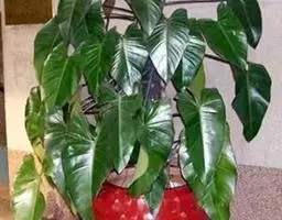 粉掌是多年生附生常绿草本花卉。株高可达1米,节间短。叶自根茎抽出,具长柄,单生,长圆状心形或卵圆形,深鲜绿色,有光泽。花芽自叶腋抽出,佛焰苞直立开展,革质,正圆状卵圆形,粉红或猩红色。其变种品种有佛焰苞乳白色、镶嵌白绿色、五彩色和有精七红边之品种,极富变化。肉穗花序无柄,圆柱状,直立,略向外倾。花两性,花被具四裂片,雄蕊4,子房2室,每室具1—2胚珠。小浆果内有种子2—4粒,粉红色,密集于肉穗花序上。