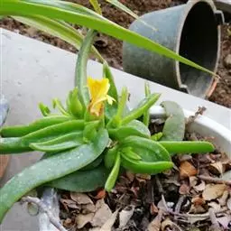 照波,番杏科多肉植物、 此种生长较快,栽培容易,细长的浓绿色叶3厘米左右,开黄色花。…