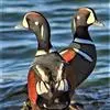 红胸秋沙鸭属中等食鱼鸭类,体长53厘米。嘴细长而带钩,捕食鱼类。丝质冠羽长而尖。雄鸟黑白色,两侧多…