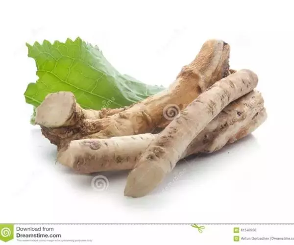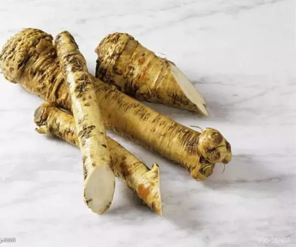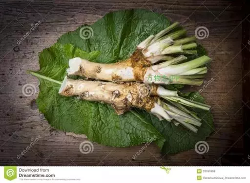 辣根,别名:马萝卜,山葵萝卜等,属双子叶植物纲、白花菜目、十字花科、辣根属多年生直立草本。全体无毛。根肉质肥大,纺锤形,白色,下部分枝。茎粗壮,表面有纵沟,多分枝。