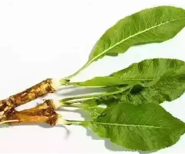 多年生直立草本,高达1米上下,全体无毛。根肉质肥大,纺锤形,白色,下部分枝。茎粗壮,表面有纵沟,多分枝。基生叶长圆形或长圆状卵形,长15-35厘米,宽7.5-15厘米,边缘具圆齿,顶端短尖或渐尖,基部心形或楔形而稍下延,叶片背面羽状网脉突起,叶柄半圆形,长达30厘米,上面凹陷;茎生叶无柄或有短柄,下部的叶长圆形至长圆状披针形,边缘通常羽状浅裂,中部的叶广披针形,上部的叶渐小,披针形至条形,边缘具不整齐锯齿或圆齿或全缘。