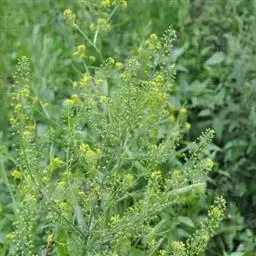 二年生草本,高40-60厘米,常全株无毛,有时叶下面中脉上有少数刺毛。基生叶多数,大形,倒卵状长圆形至宽倒卵形,长30-60厘米,宽不及长的一半,顶端圆钝,边缘皱缩,波状,有时具不显明牙齿,中脉白色,很宽,有多数粗壮侧脉;叶柄白色,扁平,长5-9厘米,宽2-8厘米,边缘有具缺刻的宽薄翅;上部茎生叶长圆状卵形、长圆披针形至长披针形,长2.5-7厘米,顶端圆钝至短急尖,全缘或有裂齿,有柄或抱茎,有粉霜。花鲜黄色,直径1.2-1.5厘米;花梗长4-6毫米;萼片长圆形或卵状披针形,长4-5毫米,直立,淡绿色至黄色;花瓣倒卵形,长7-8毫米,基部渐窄成爪。长角果较粗短,长3-6厘米,宽约3毫米,两侧压扁,直立,喙长4-10毫米,宽约1毫米,顶端圆;果梗开展或上升,长2.5-3厘米,较粗。种子球形,直径1-1.5毫米,棕色。花期5月,果期6月。