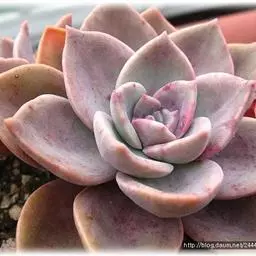 紫珍珠是景天科石莲花属的多年生肉质草本植物。植株中小型;叶片肉质,匙形,呈莲座状紧密排列;叶片粉紫色,…