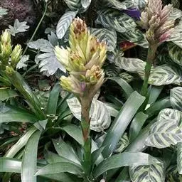 彩叶凤梨 L.B.Sm.) 凤梨科多年生常绿草本。株高25-30厘米,茎短。叶革质,带状,常基生,…