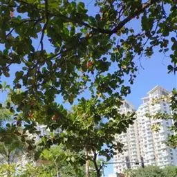 七叶树(学名:Aesculus chinensis Bunge):是落叶乔木,高达25米,树皮深褐色或灰褐色,小枝、圆柱形,黄褐色或灰褐色,有淡黄色的皮孔。冬芽大形,有树脂。掌状复叶,由5-7小组成,上面深绿色,无毛,下面除中肋及侧脉的基部嫩时有疏柔毛外,其余部分无毛。花序圆筒形,花序总轴有微柔毛,小花序常由5-10朵花组成,平斜向伸展,有微柔毛。花杂性,雄花与两性花同株,花萼管状钟形,花瓣4,白色,长圆倒卵形至长圆倒披针形。果实球形或倒卵圆形,黄褐色,无刺,具很密的斑点。种子常1-2 粒发育,近于球形,栗褐色;种脐白色,约占种子体积的1/2。花期4-5月,果期10月。
