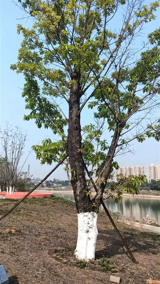七叶树主根深而侧根少,属于不耐移植的树种,故在移栽时必须带土球,土球直径为树木胸径的6至8倍。栽植七叶树,应在初春其萌芽前或秋末其叶片全部掉落后进行。为了提高栽植成活率,栽植前应尽量将栽植坑挖大一些,这样有利于植株的生长。栽植时,应注意不可过深,过深易导致植株闷芽,一般来说,栽植深度可略高于土球上表皮的3厘米至5厘米。栽植时回填土要分层踏实。