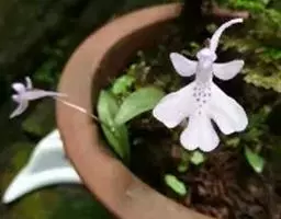 假鳞茎卵球形或长圆形,长1-1.3厘米,直径约1厘米,彼此较密接,具节,多少具撕裂成纤维状的残留鞘。叶2枚,生于假鳞茎顶端,线状披针形或狭披针形,基部收狭成柄,连柄长达17厘米,上部宽5-7毫米。花葶从假鳞茎侧面或近顶端处发出,长20-30厘米,中下部有2-3枚筒状鞘;总状花序长4-6厘米,具8-12朵花;花苞片卵状披针形,长1.5-3毫米;花梗和子房长6-9毫米;花白色;萼片长圆状披针形,长5.5-6毫米,宽1.5-2毫米,先端近急尖;侧萼片略斜歪;花瓣披针形或线状披针形,长5-5.5毫米,宽约1.2毫米,先端短渐尖;唇瓣轮廓近长圆状倒卵形,长约5毫米,近基部3裂,基部有短爪,无囊;侧裂片近线形,长约1.5毫米;中裂片倒卵形或宽倒卵形,边缘有不规则缺刻,略呈皱波状,有时先端有凹缺;唇盘上在两枚侧裂片之间有1枚线形的、中央有纵槽的胼胝体,延伸到中裂片下部;蕊柱长约2.5毫米,略向前弯。蒴果椭圆形,下垂,长1-1.2厘米,宽约5毫米。花期6月,果期不详。