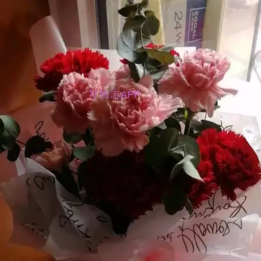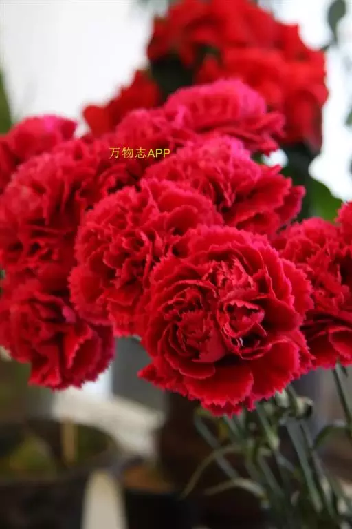 康乃馨,大部分代表了爱,魅力和尊敬之情,红色代表了爱和关怀。粉红色康乃馨传说是圣母玛