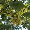 花多数,杂性,雄花与两性花同株,多数常成无毛的顶生圆锥状伞房花序,长与宽均约4厘米,生于有叶的枝上,花序的总花梗长l-2厘米,花的开放与叶的生长同时;萼片5,黄绿色,长圆形,顶端钝. 形,长2-3毫米;花瓣5,淡白色,椭圆形或椭圆倒卵形,长约3毫米;雄蕊8,无毛,比花瓣短,位于花盘内侧的边缘,花药黄色,椭圆形;子房无毛或近于无毛,在雄花中不发育,花,柱无毛,很短,柱头2裂,反卷;花梗长1厘米,细瘦,无毛。