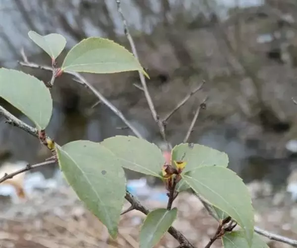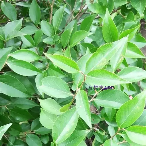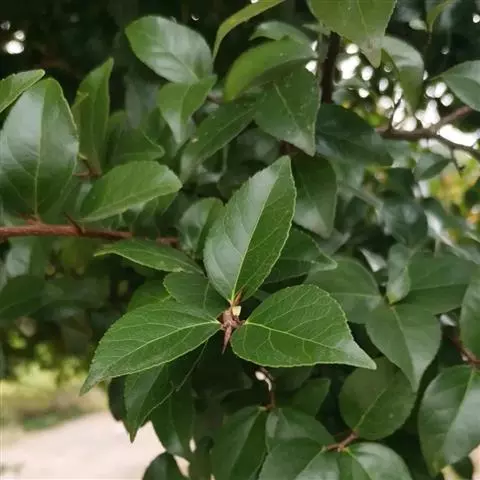 柞木 (原变种),常绿大灌木或小乔木,高4-15米;树皮棕灰色,不规则从下面向上反卷呈小片,裂片向上反卷;幼时有枝刺,结果株无刺;枝条近无毛或有疏短毛。叶薄革质,雌雄株稍有区别,通常雌株的叶有变化,菱状椭圆形至卵状椭圆形,长4-8厘米,宽2.53.5厘米,先端渐尖,基部楔形或圆形,边缘有锯齿,两面无毛或在近基部中脉有污毛;叶柄短,长约2毫米,有短毛。