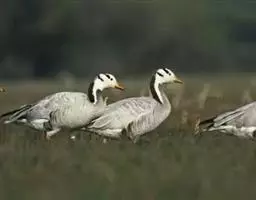 斑头雁是雁形目鸭科雁属鸟类,又称白头雁、黑纹头雁。通体大都灰褐色,头和颈侧白色,…