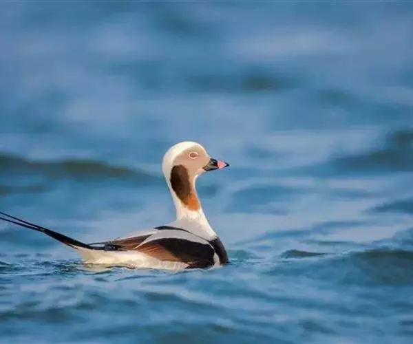 长尾鸭(学名:Clangula hyemalis)体长约58厘米,是中等体型的灰、黑及白色鸭,中央尾羽特长,雄鸟胸部的黑色斑块为特征。分布范围遍及全北界。 是一种非常罕见的冬候鸟。繁殖期主要栖息于北极冻原上的水塘和小型湖泊中,也栖息在流速缓慢的河流及河口地区。非繁殖季节主要栖息在沿海水域,海岛和海湾,偶尔到内陆大的湖泊与江河中。以动物性食物为食。繁殖季节主要以淡水动物如石蚕等昆虫的幼虫、虾、甲壳类、小鱼和软体动物为食,冬季则主要以海生动物为食。广泛分布于整个北半球。繁殖在北极地区,包括北美洲北部、格陵兰岛、冰岛、欧洲和亚洲北部和白令海中的一些岛屿,南到芬兰南部、阿拉斯加南部和加拿大拉布拉多半岛。