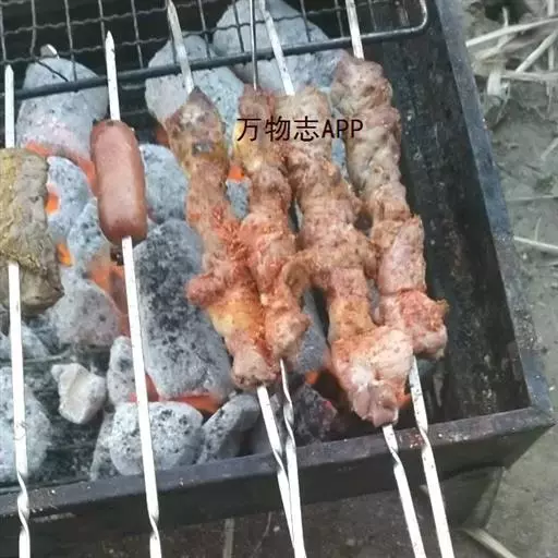 2.将裹匀稠糊状调味料的小块羊肉,用手捏扁穿在竹签上(每串可穿8~10个)。 3.将羊肉串横架在点燃、煽旺的炭烤炉上,边煽边烤,待羊肉串两面烤至出油时即熟(喜食辣味,可稍洒辣椒粉)。