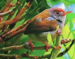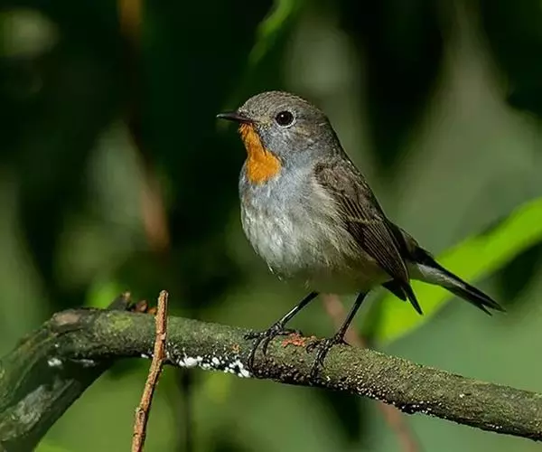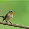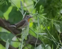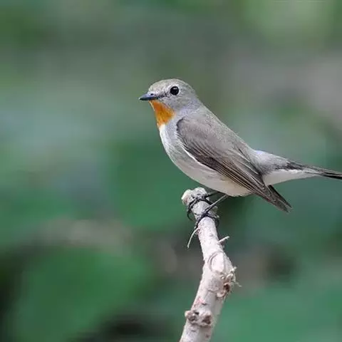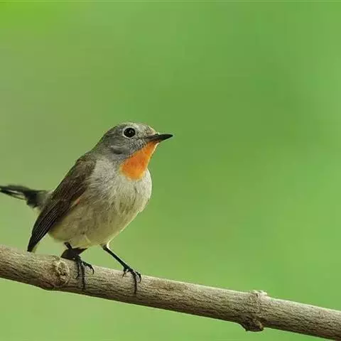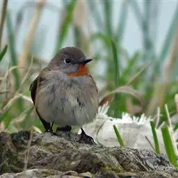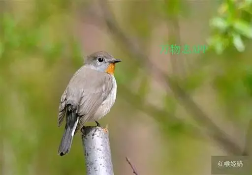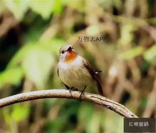 红喉姬鹟(学名:Ficedula parva)小型鸟类,体长11~13厘米。雄鸟上体灰黄褐色,眼先、眼周白色,尾上覆羽和中央尾羽黑褐色,外侧尾羽褐色,基部白色。颏、喉繁殖期间橙红色,胸淡灰色,其余下体白色,非繁殖期颏、喉变为白色。雌鸟颏、喉白色,胸沾棕,其余同雄鸟。