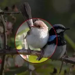 雌鸟颏、喉不为橙红色而为白色或污白色,胸沾棕黄褐色,其余似雄鸟。