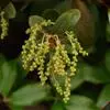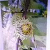 雄花序与叶同时开放,数个簇生;雌花单生或2-3朵生于长约1厘米的总柄上。壳斗杯形,包着坚果1/4-1/3,直径1.5-1.8厘米,高1-1.2厘米;小苞片三角形,紧密覆瓦状排列,无毛而有光泽。坚果长椭圆形,直径约1.5厘米,高2-2.5厘米,淡褐色,被薄绒毛,后渐脱落;顶端圆形,有小柱座;果脐平或微内凹。花期4-5月,果期翌年9月。