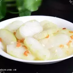 3、油烧热.放入南瓜、百合.调入调味料炒匀.用生粉勾芡即可出锅。