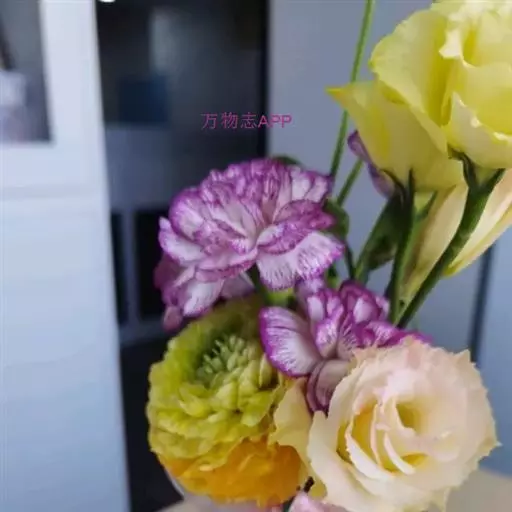 洋桔梗(Eustoma grandiflorum(Raf.)Shinners)龙胆科 多年生植物,株高30-100厘米。叶对生,阔椭圆形至披针形,几无柄,叶基略抱茎;叶表蓝绿色。雌雄蕊明显,苞片狭窄披针形,花瓣覆瓦状排列。花色丰富,有单色及复色,花瓣单瓣与双瓣之分。