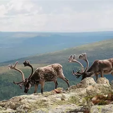 驯鹿,又名角鹿。是鹿科驯鹿属下的唯一一种动物。身长约200厘米,肩高100-120厘米。雌雄皆有角,…