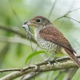 楔尾伯劳幼鸟上体略沾淡褐,下体灰白色,微具暗褐色鳞纹。